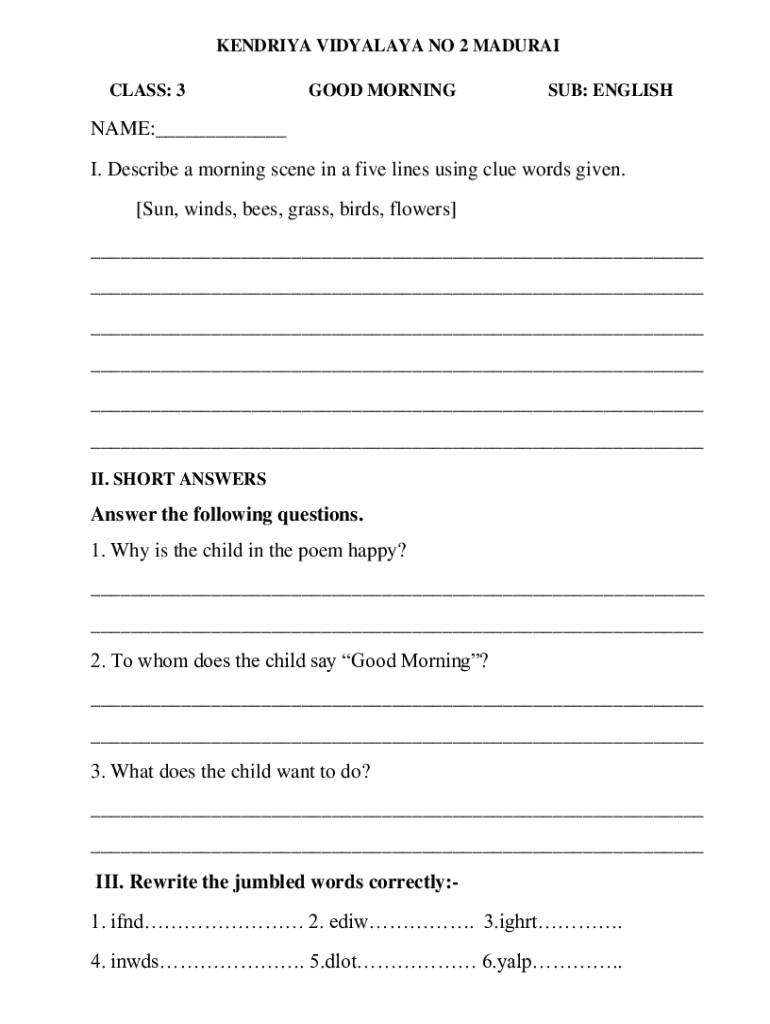 Get the free ENGLISH Worksheet-1 Read the poem carefully and answer