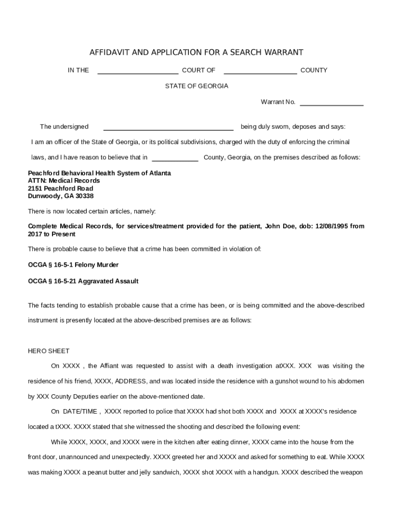 Affidavit and Application for a Search Warrant template instructions