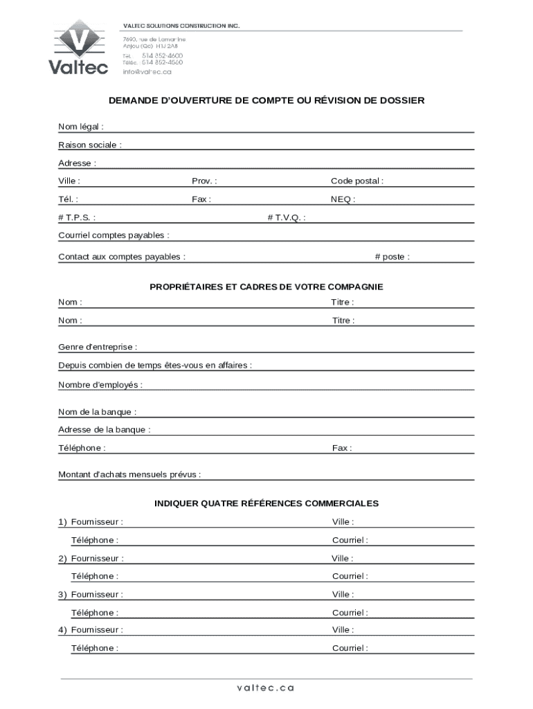 Template DEMANDE D'OUVERTURE DE COMPTE OU RVISION ... instructions