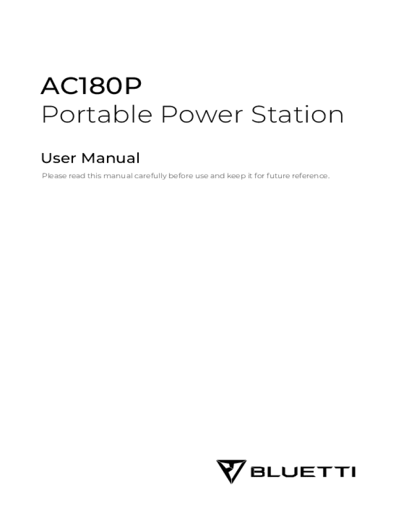 Get the free BLUETTI AC180P Portable Solar Power Station User Manual