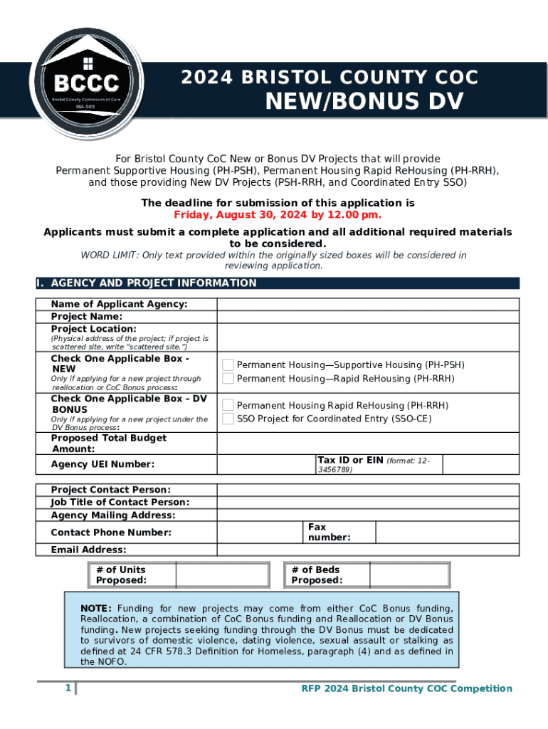 What is 2024 Bristol County Coc New/bonus Dv Application Form?