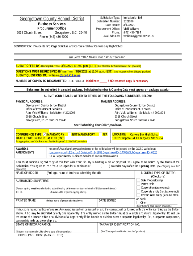 - Search for the Georgetown County School District Invitation for Bid in the PDFfiller’s filebase.