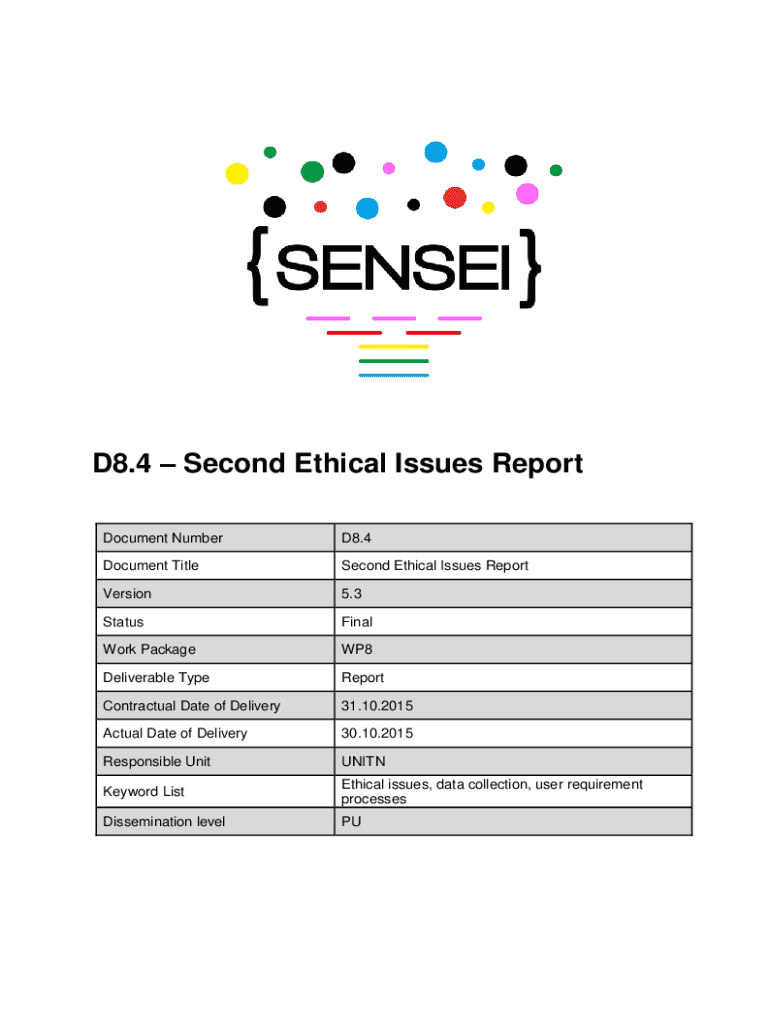 Get the free D8.4Second Ethical Issues Report - Sensei FP7 Project