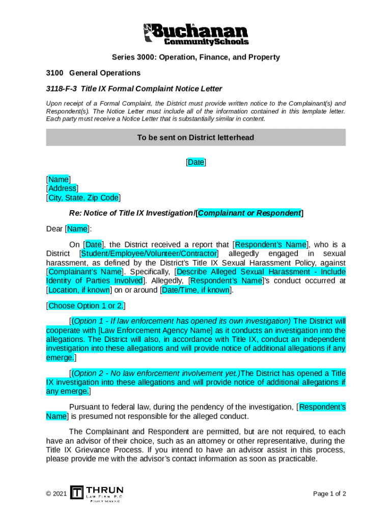 Title Ix al Complaint Notice Letter template instructions