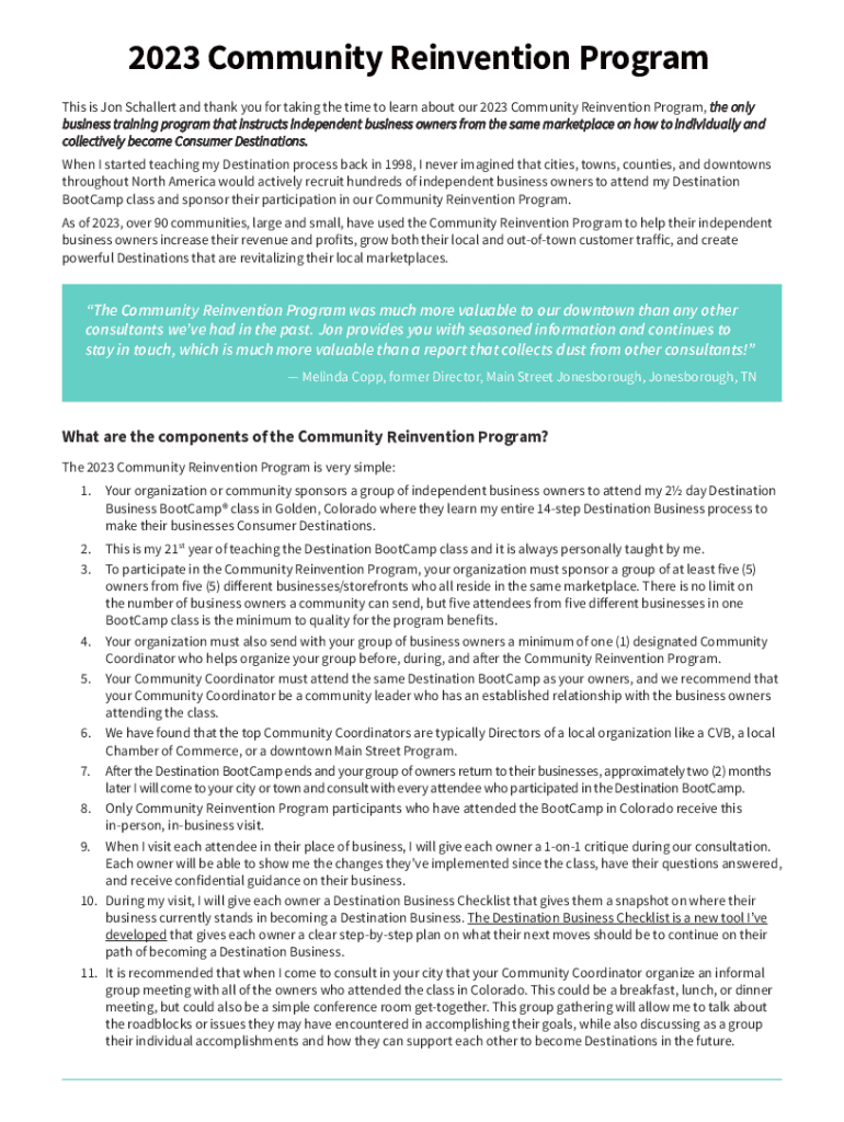 Fill out your 2023 community reinvention program online with pdfFiller!