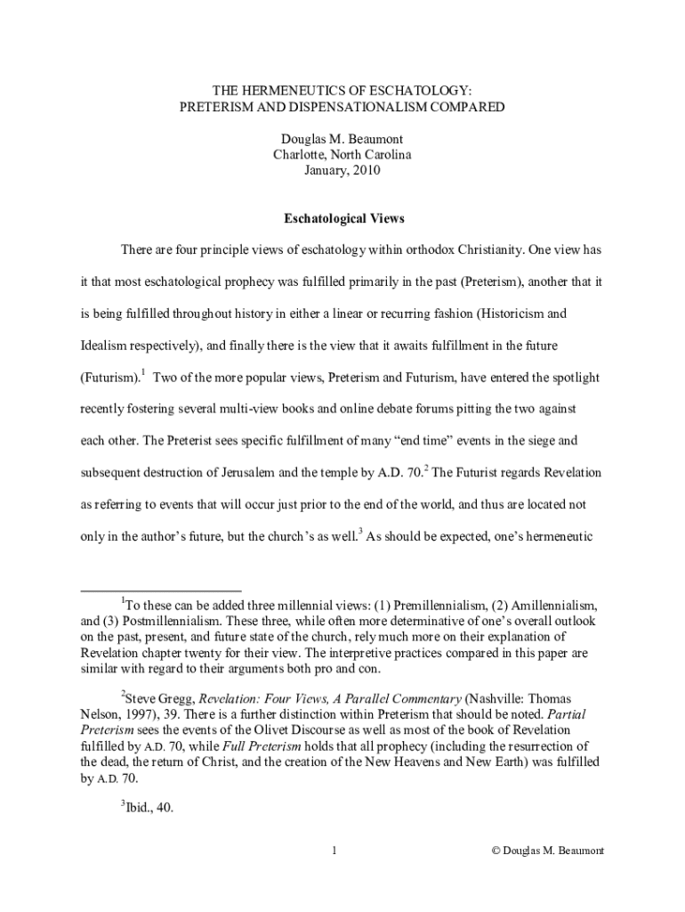 Get the free The Hermeneutics Of Eschatology: Preterism And ...