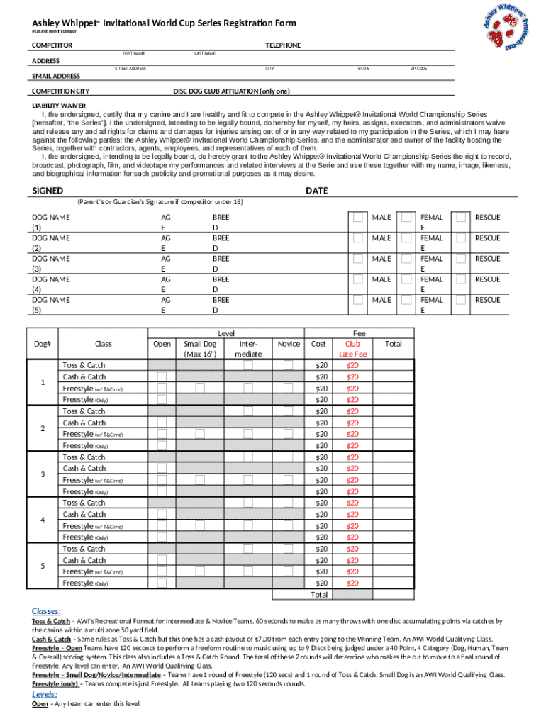 What is Ashley Whippet® Invitational World Cup Series Registration Form?