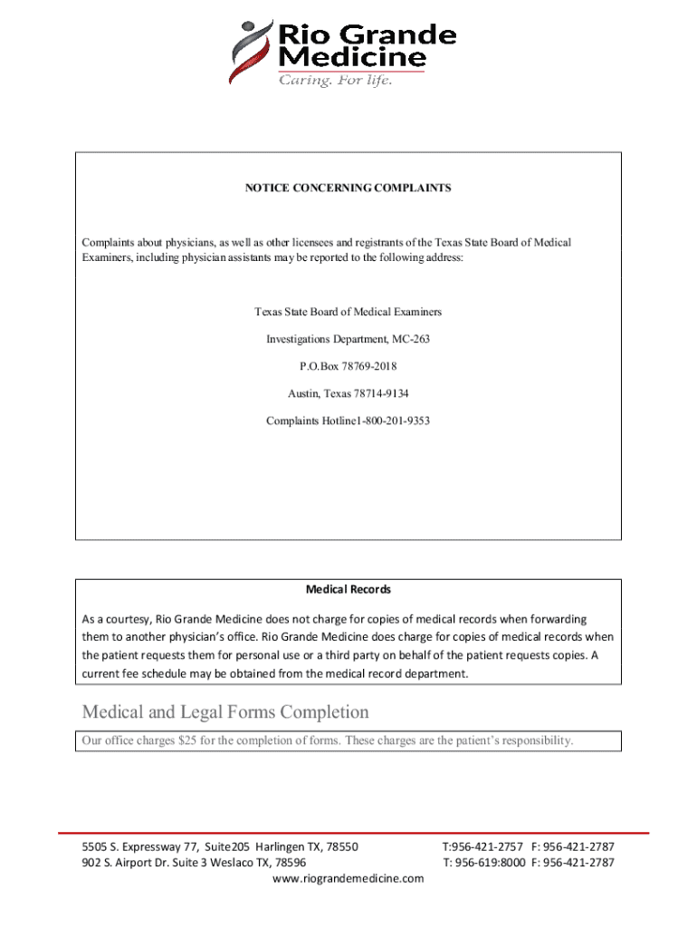 NOTICE CONCERNING COMPLAINTSComplaints about physicians, as well as other licensees and registrants of the Texas State Board of Medical
