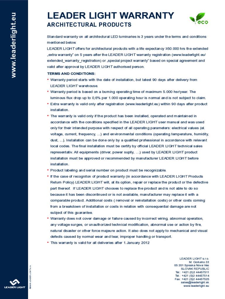 WWW.leader light.leader LIGHT WARRANTY
