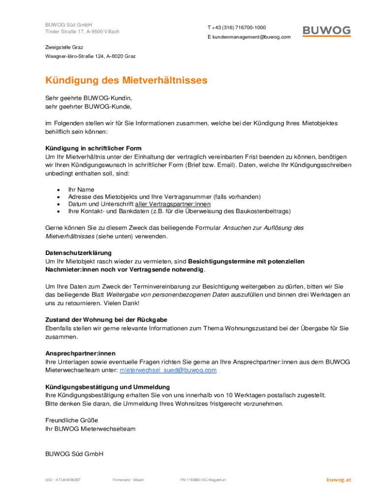 WaagnerBiroStrae 124, A8020 GrazKndigung DES Mietverhltnisses