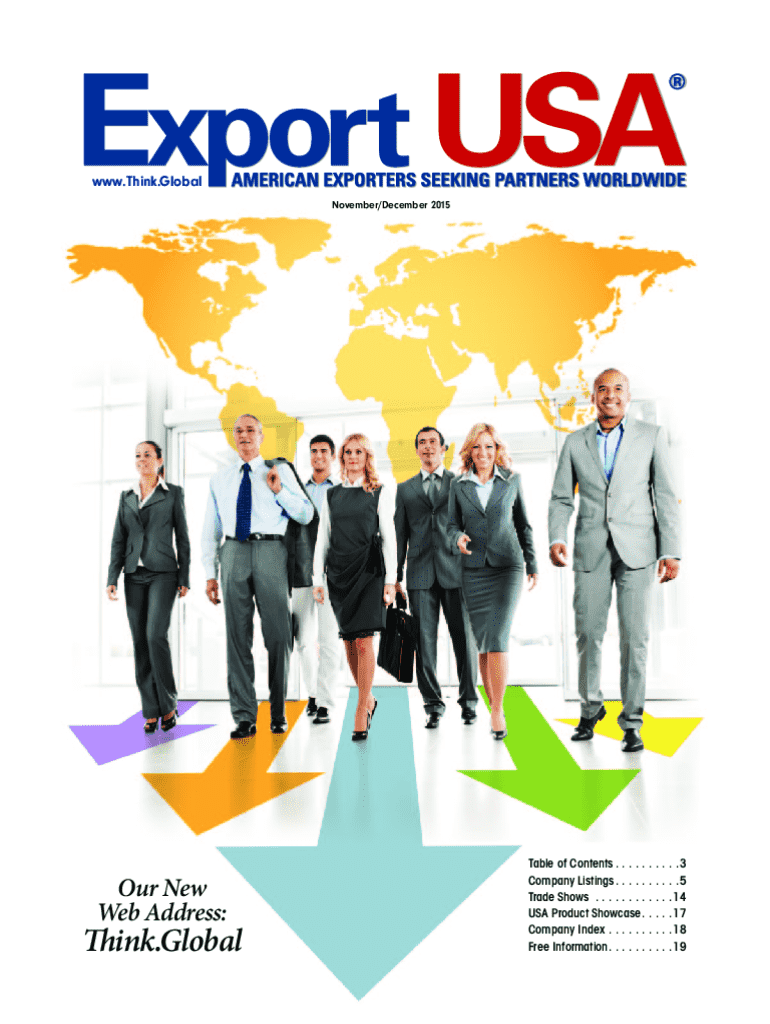 www.Think.Global November/December 2015Our New Web Address:Think.GlobalTable of Contents. . . . . . . . . . 3 Company Listings. . . . . . . . . . 5 Trade Shows . . . . . . . . . . . . 14 USA Product