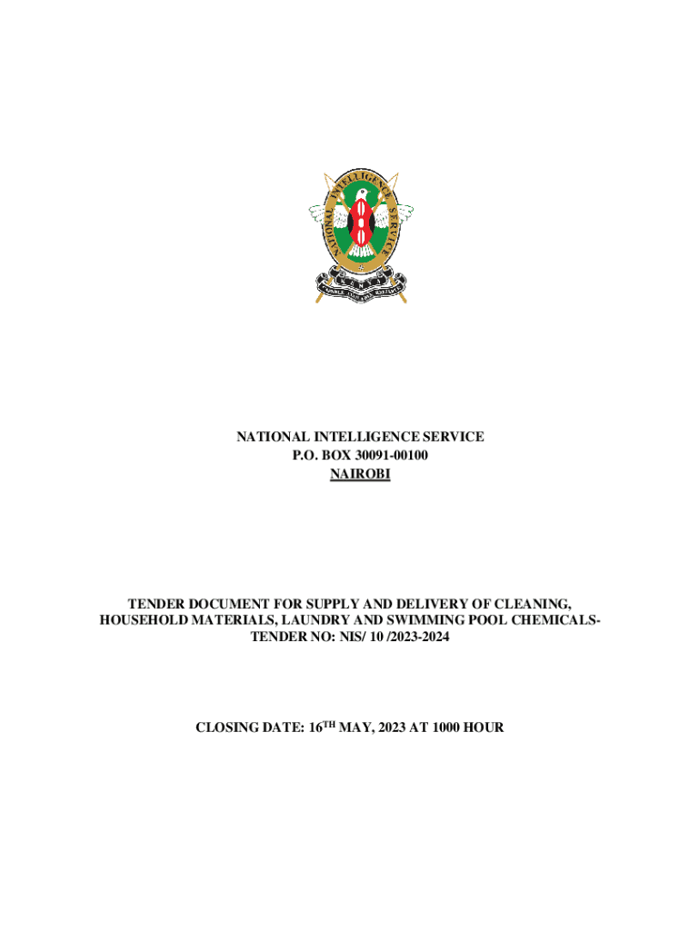 Get the free TENDER DOCUMENT FOR SUPPLY AND DELIVERY OF CLEANING,