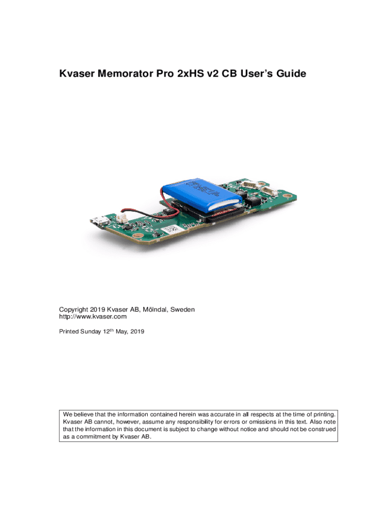 Get the free Kvaser Memorator Pro 2xHS v2 CB Users Guide
