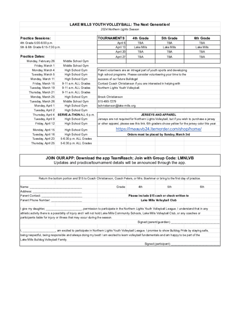 Edit your lake mills youth volleyball form online