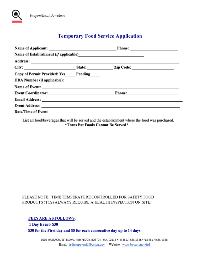 Temporary Food Application Process All temporary food service applications must be completely filled out and submitted to the office 10 days prior to your event. Any vendor that does not have a licensed