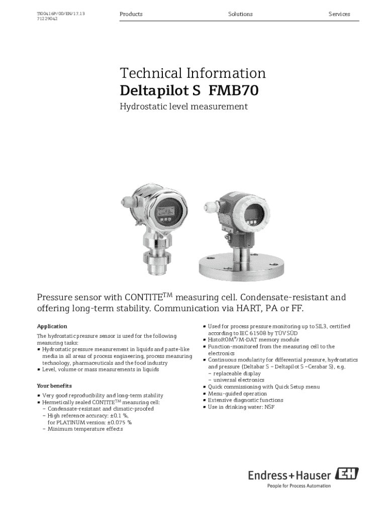Get the free Technical Information Deltapilot S FMB70