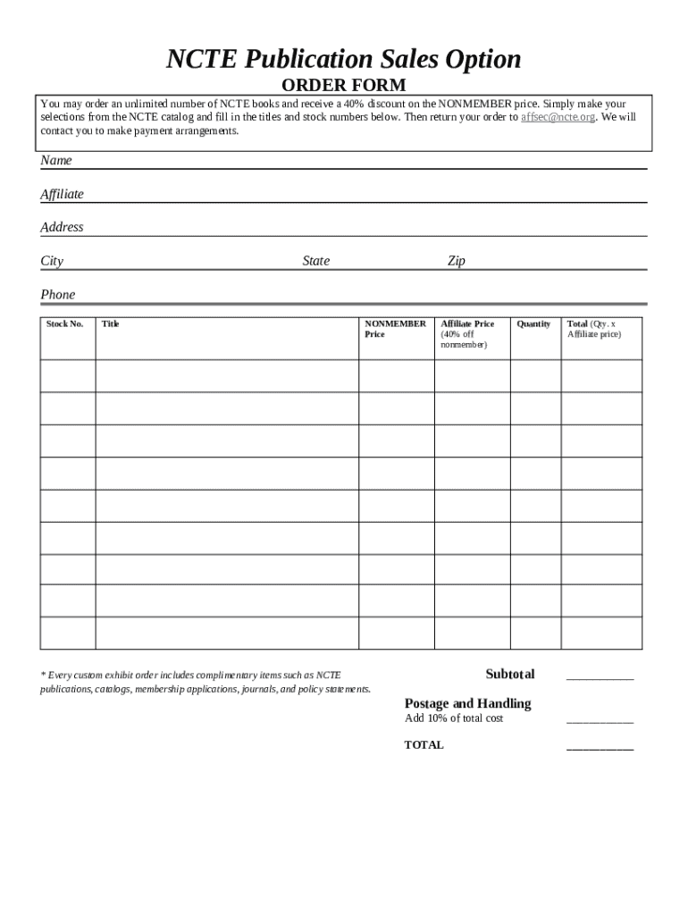 Ncte Publication Sales Option Order word template: frequently asked questions