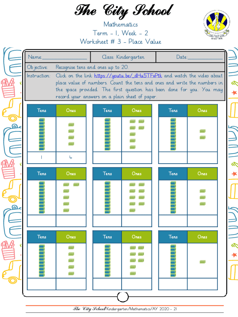 This worksheet helps Kindergarten students recognize tens and ones up to 20. Engage with videos and exercises to enhance understanding of place value.
