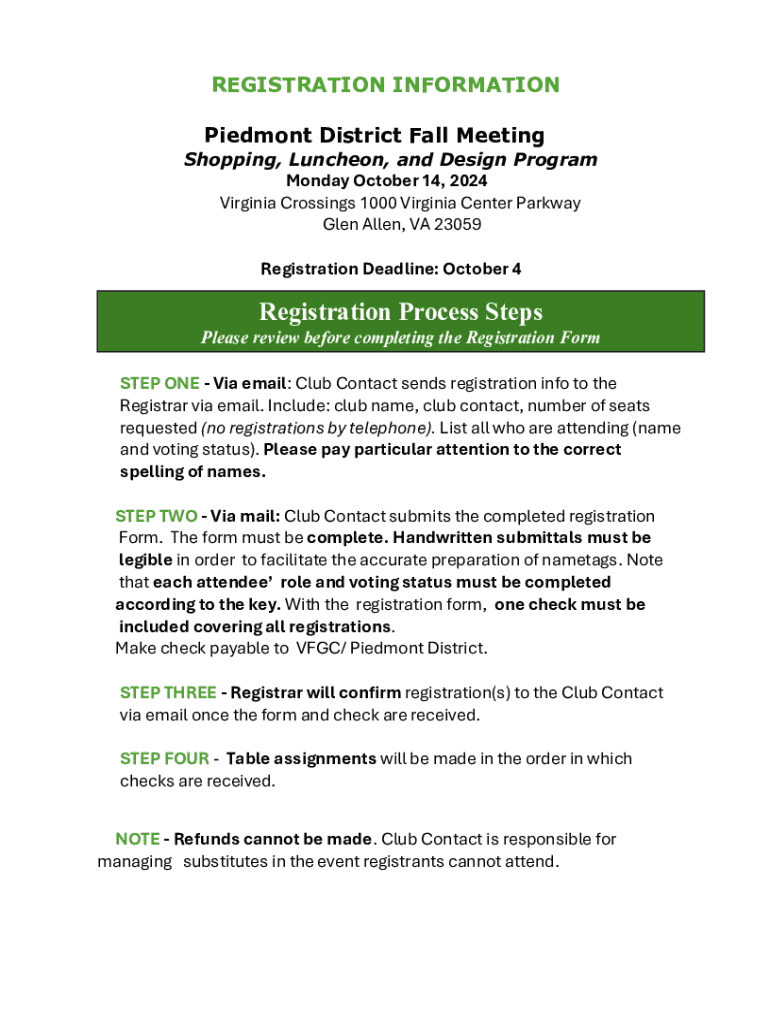 Register for the Piedmont District Fall Meeting on October 14, 2024, at Virginia Crossings. Secure your spot by submitting the form before October 4.