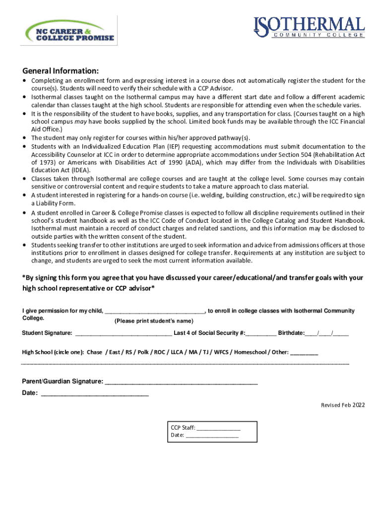 ICC Permission Form By signing the permission form, the student and parent/guardian understand and acknowledge the college policies and Career and College Promise eligibility detailed below.Grades: