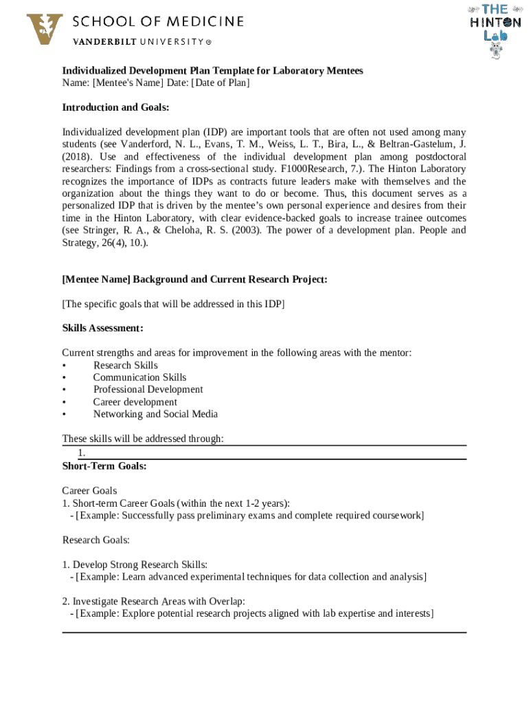 Template HSCI Individual Development Plan and Shared Expectations instructions