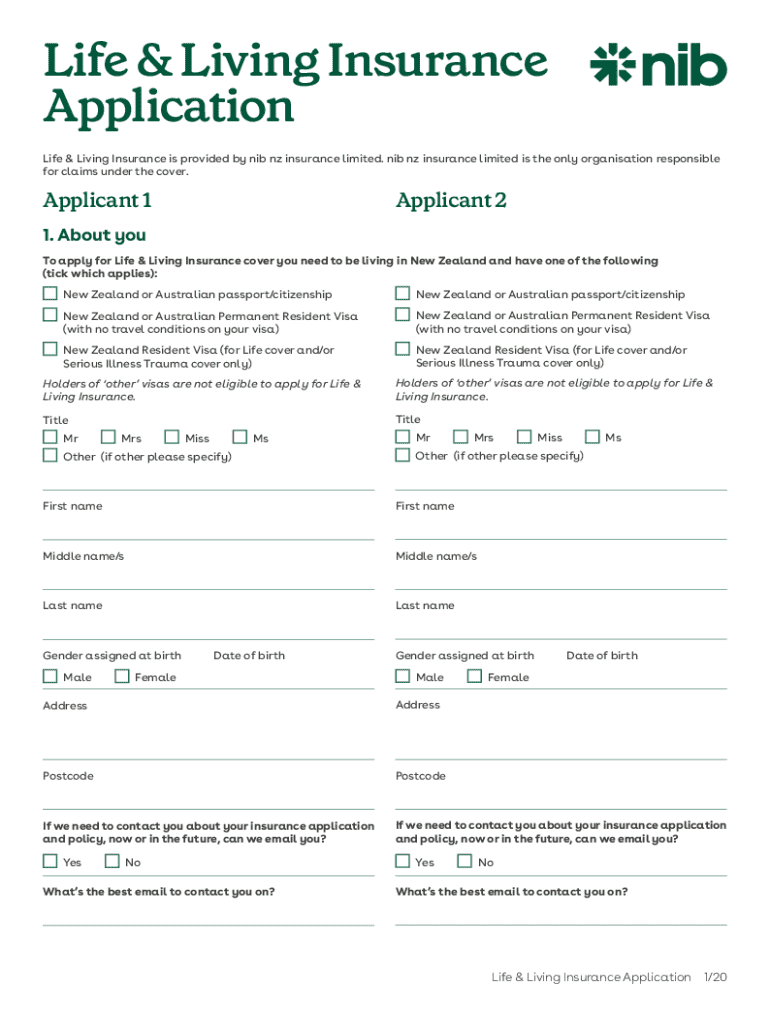 Life & Living Insurance Application Life & Living Insurance is provided by nib nz insurance limited. nib nz insurance limited is the only organisation responsible for claims under the cover.Applicant