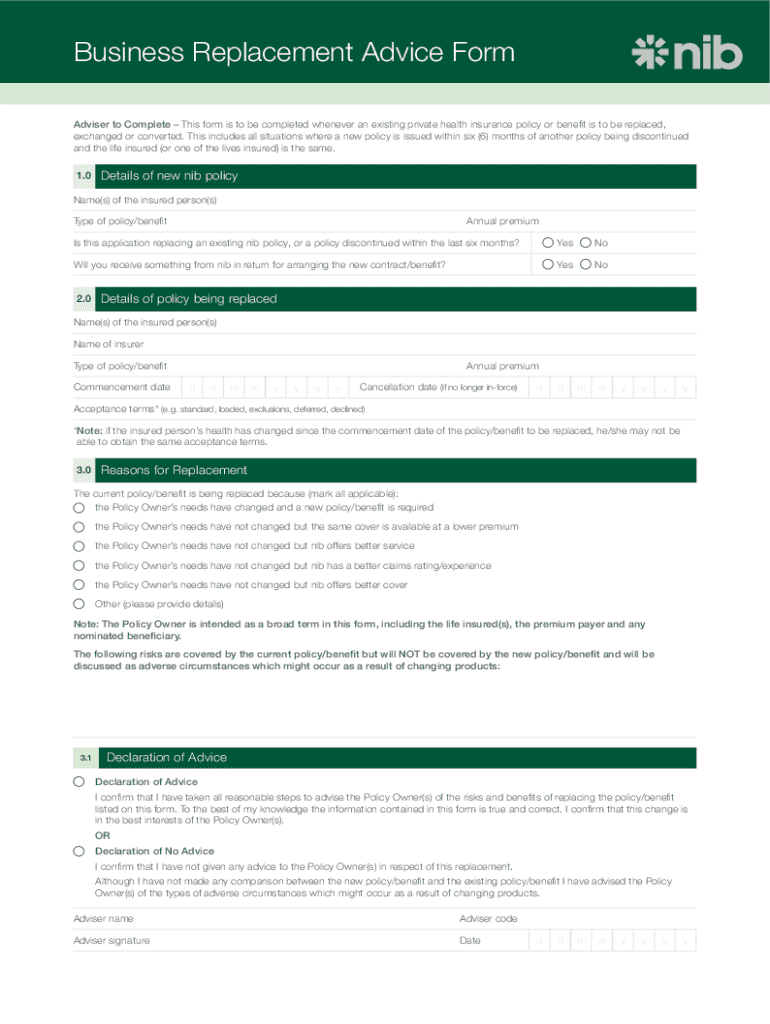 Completing the Business Replacement Advice Form requires attention to detail and accuracy. Here’s a section-by-section guide: