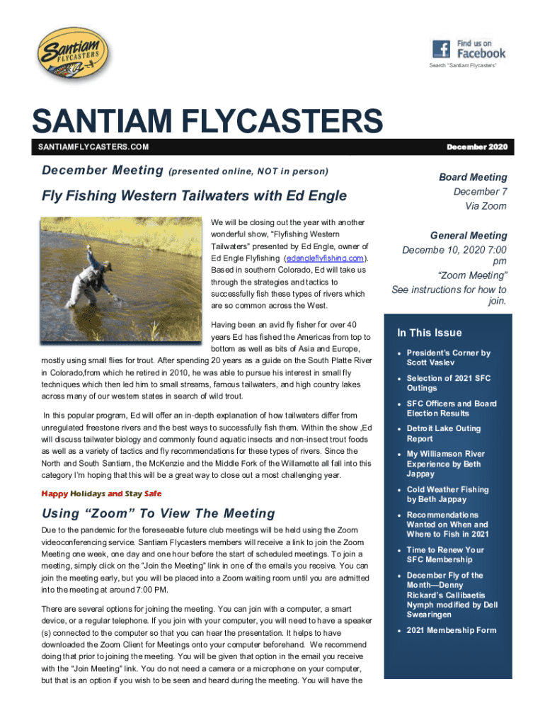 December 2020SANTIAMFLYCASTERS.COM December Meeting(presented online, NOT in person)Board Meeting