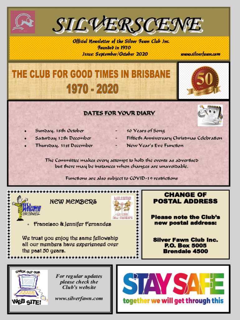 Stay updated with the Silver Fawn Club Inc. 2020 activities including special events, membership details, and COVID-19 measures. Join us in celebrating 50 years of good times!
