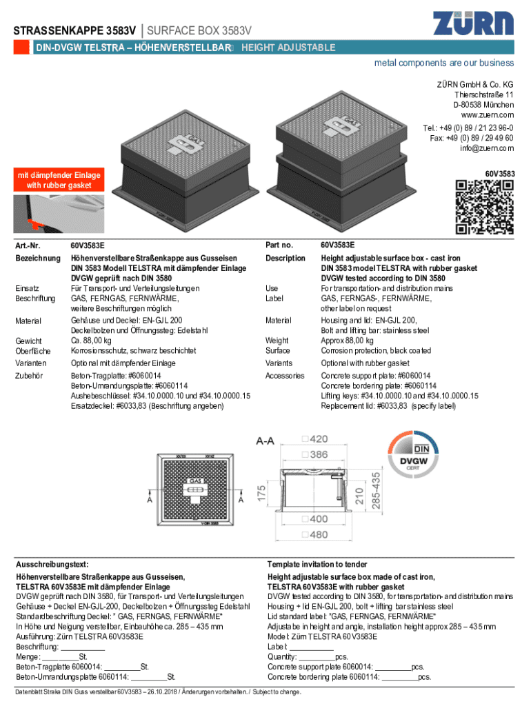 Um die strassenkappe 4056v surface box auszufüllen, müssen die relevanten Informationen über die Straßeninfrastruktur, einschließlich Standort, Art der Oberfläche und andere technische Details, angegeben werden.