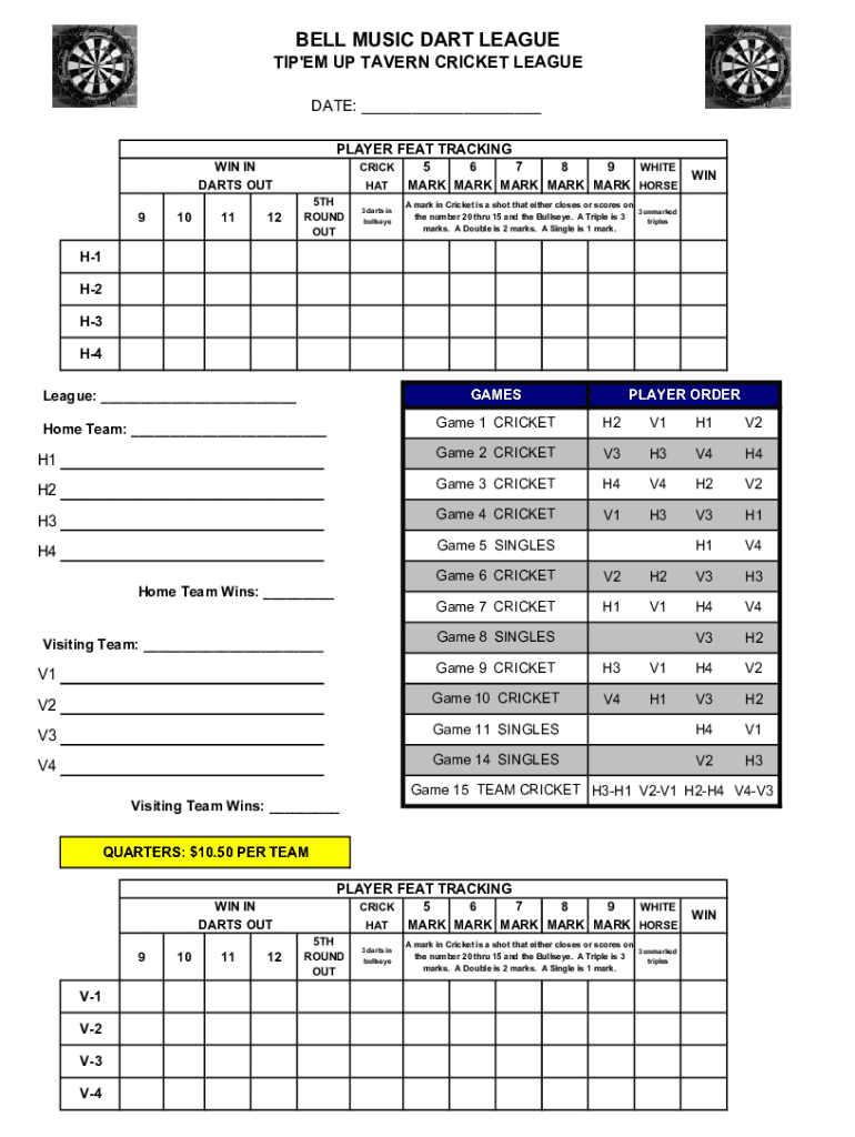 To fill out the Bell Music Dart League, individuals must provide details such as player names, scores, and any relevant match information as outlined by league rules.