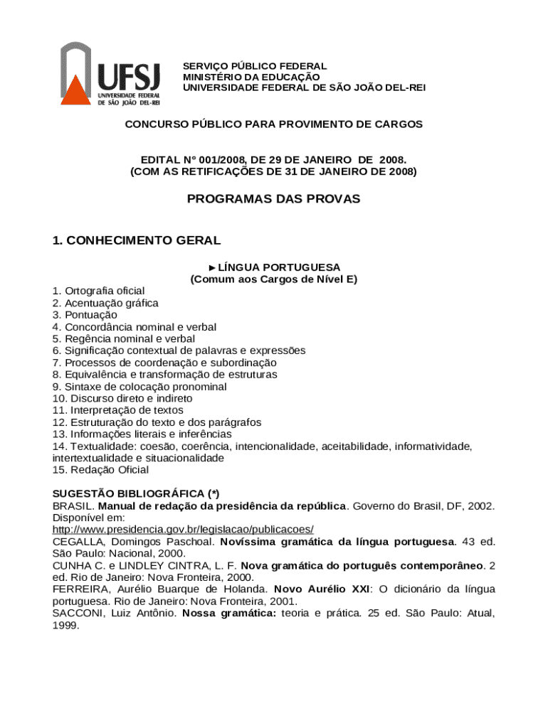 Instructions for the programas das provas 1. conhecimento geral - ufsj edu form