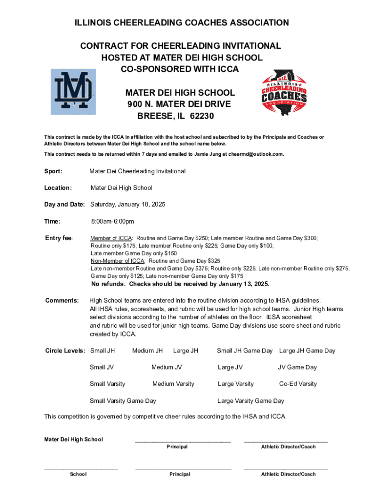 Join the Illinois Cheerleading Invitational at Mater Dei High School on January 18, 2025. Secure your spot and understand entry fees and guidelines. Don\'t miss out!
