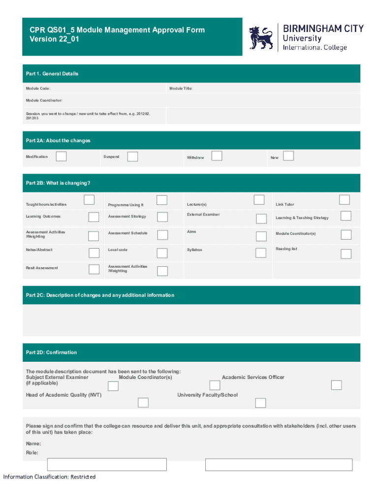 CPR QS01_5 Module Management Approval Form