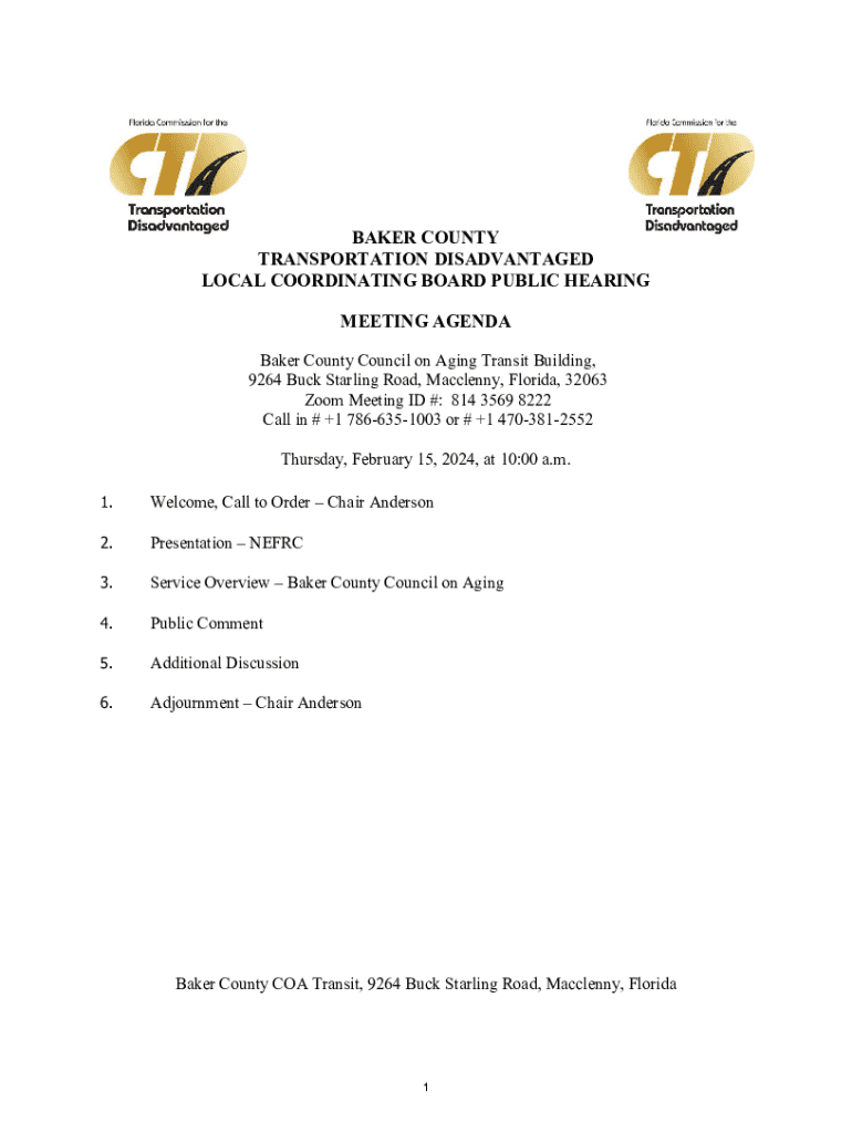 LOCAL COORDINATING BOARD PUBLIC HEARING