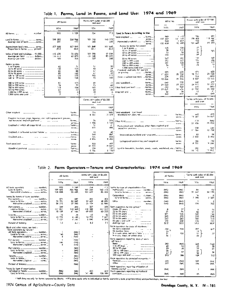 Farms, Land in Farms, and Land Use:Table LForms with sales of $2,500 and overAll farmsAll farms ___ number __forms with sales of $2,500 and overAll forms19741969197419699921 1597547131974196919741969113