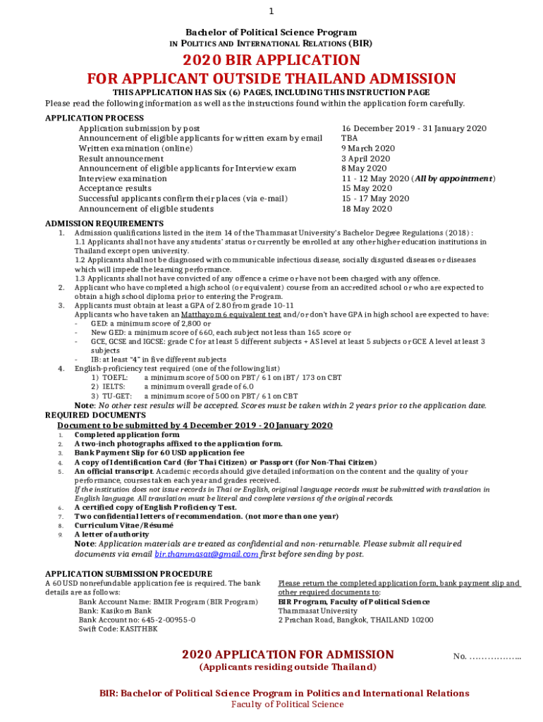 Bachelor of Political Science Program Application template instructions