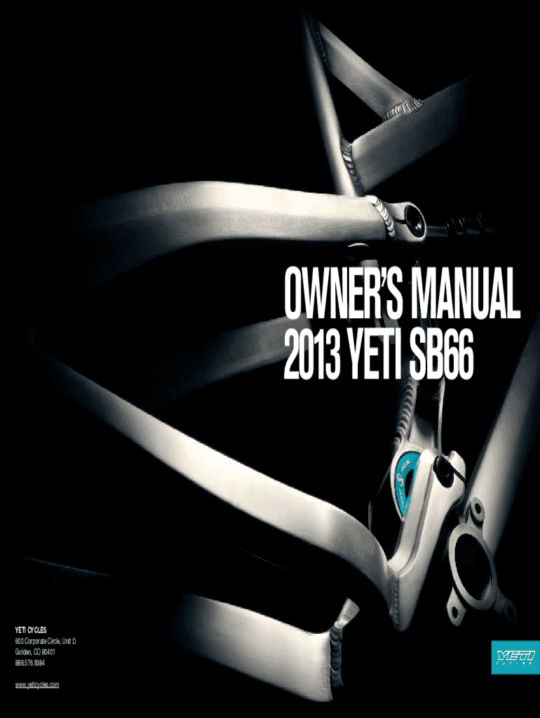 Explore the comprehensive 2013 YETI SB66 Owner\'s Manual, offering setup, maintenance tips, and technical features to enhance your cycling experience.