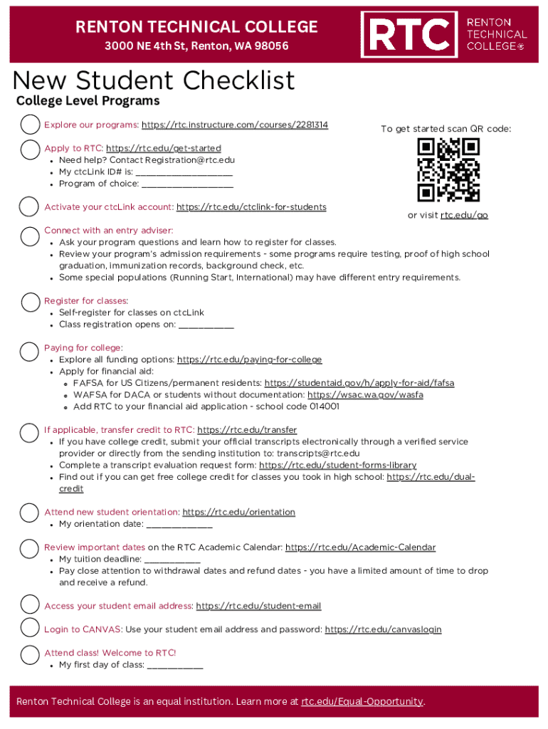 Get started at Renton Technical College with our New Student Checklist. Explore programs, financial aid, and register for classes in 2023.
