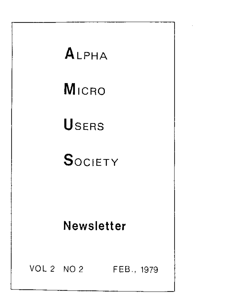 ALPHAM,CROUSERSSOCIETYNewsletterVOL 2NO 2FEB., 1979AMUS CALLS We do have our new phone now and also a person to maintain some organization. The phone is (303) 4496917 and the person is SHARON GREENE. Sharon will be handling the incoming mail, developing system and hardware cross reference lists, mailing the newsletter, disks, manuals, dues renewals, copies of literature and AMUS applications. Jim Taylor is still available for more technical questions but Sharon has most all of our information...