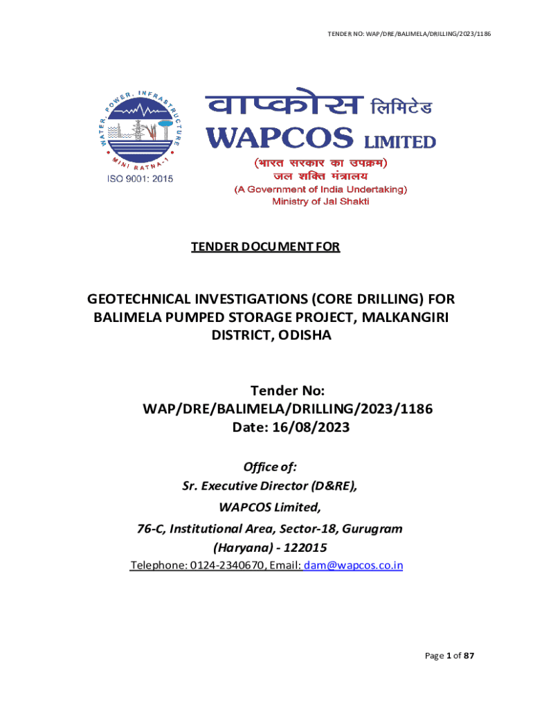 Get the free GEOTECHNICAL INVESTIGATIONS (CORE DRILLING) FOR