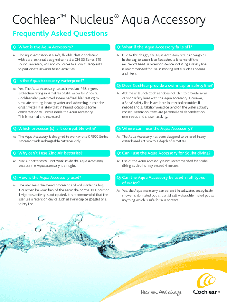 Get the free Cochlear Nucleus Aqua Accessory Faq