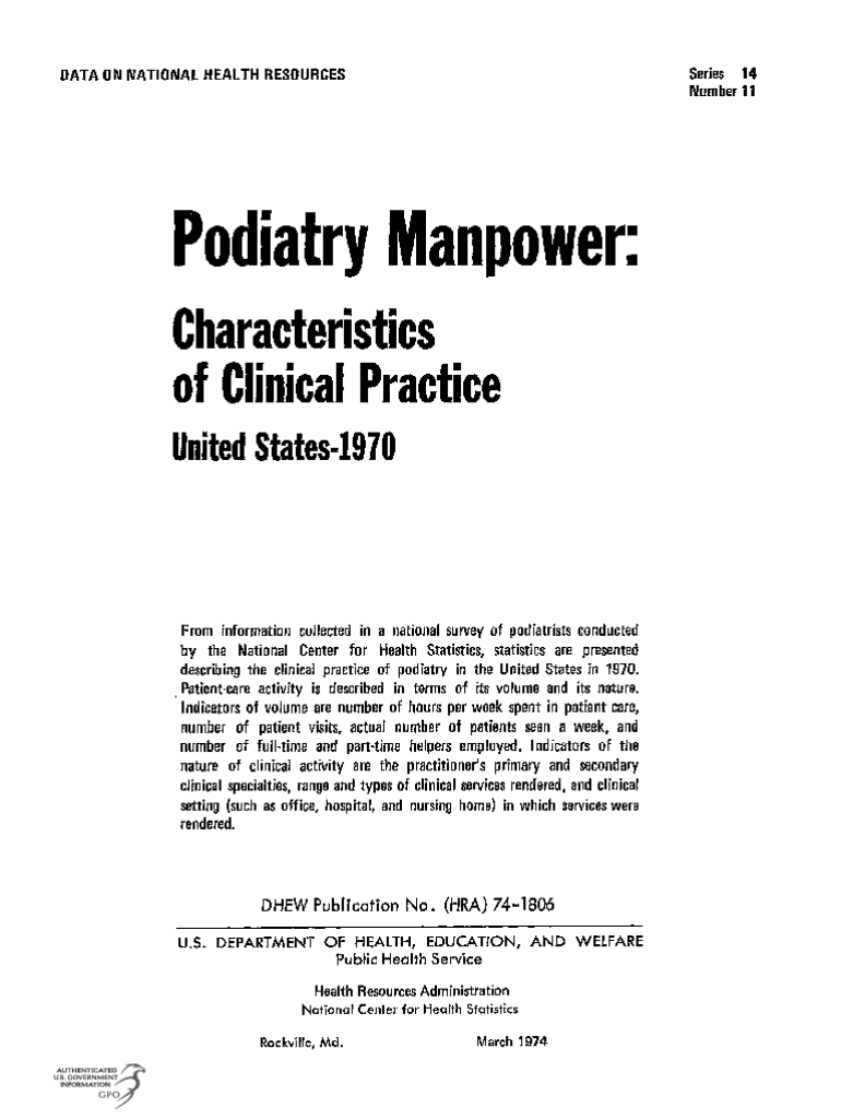 Get the free Vital and Health Statistics; Series 14, No. 11 (3/74). Podiatry Manpower