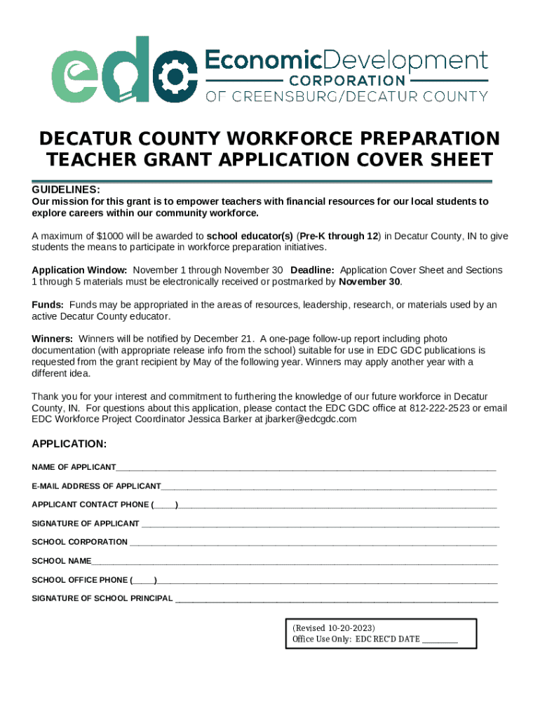 What is Decatur County Workforce Preparation Teacher Grant Application Form?