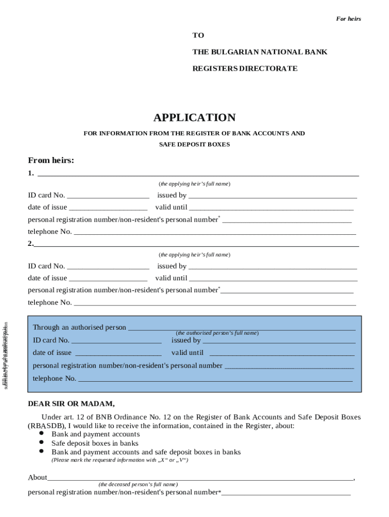 How to fill Application for Ination From the Register of Bank Accounts and Safe Deposit Boxes word template