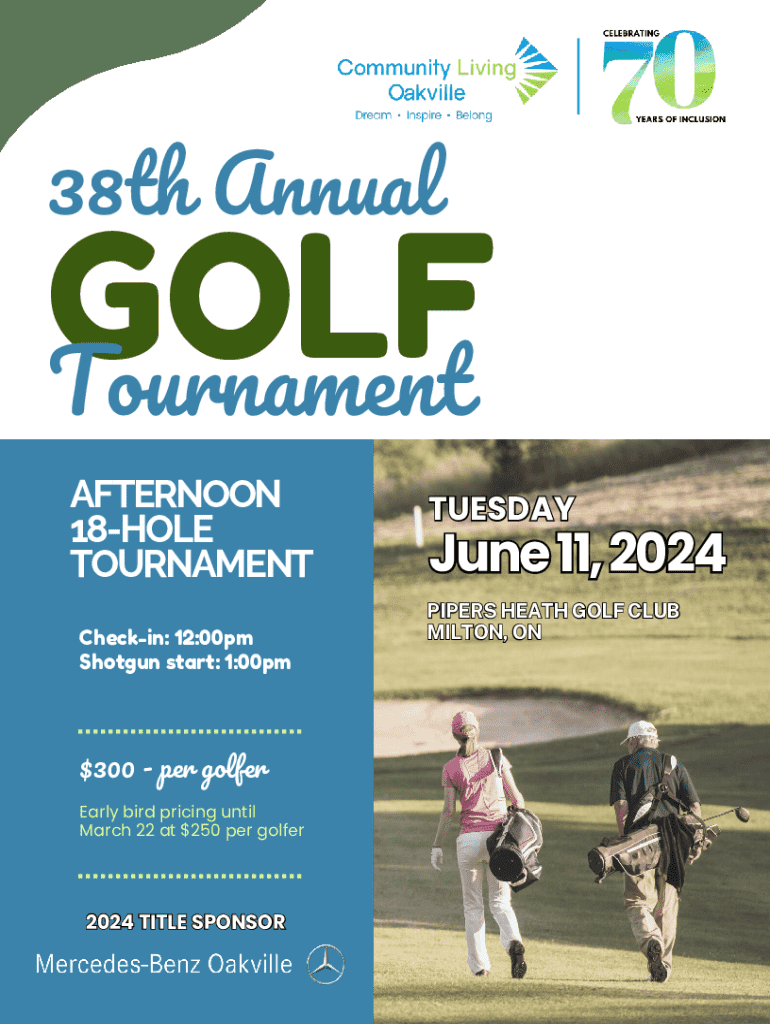 38th AnnualGOLF Tournament AFTERNOON 18HOLE TOURNAMENT Checkin: 12:00pm Shotgun start: 1:00pm$300 per golfer Early bird pricing until March 22 at $250 per golfer2024 TITLE SPONSORTUESDAYJune 11, 2024