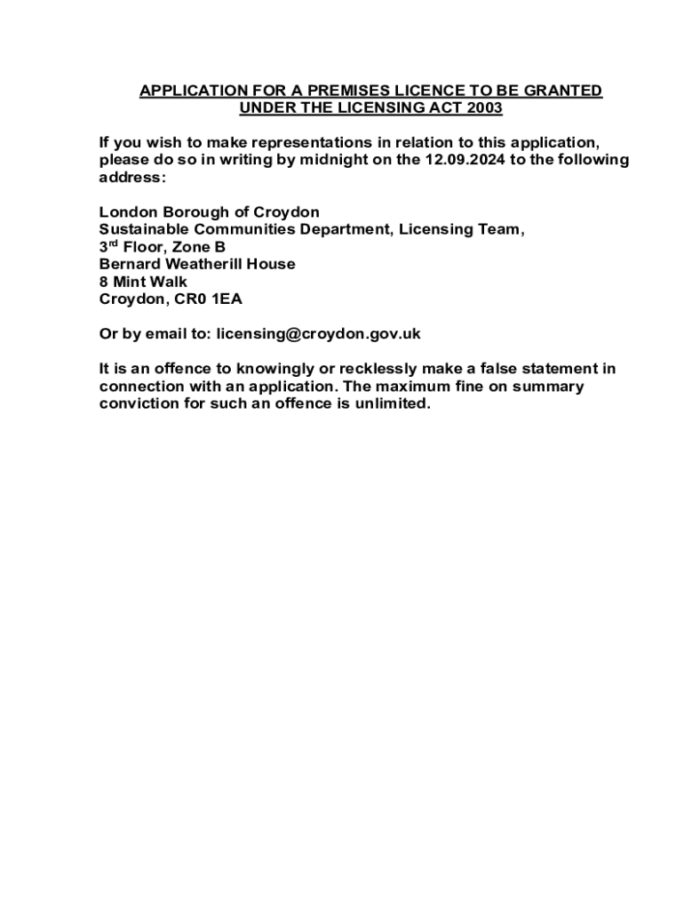 Apply for a premises licence under the Licensing Act 2003. Ensure compliance with licensing objectives and represent local authority interests.