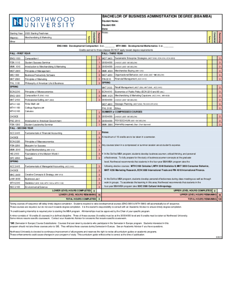 Take merchandising & MarketingMinorRemainingTake in Major(s):CompletedStarting Year: