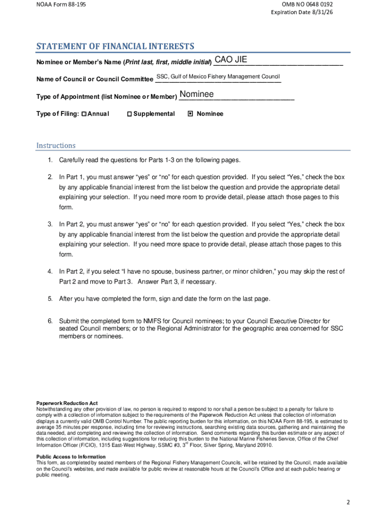 Individuals or organizations that engage in activities related to marine and coastal resources and are required to report data to NOAA must file NOAA Form 88-195.