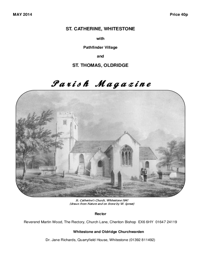 MAY 2014Price 40pST. CATHERINE, WHITESTONE with Pathfinder Village andST. THOMAS, OLDRIDGEParish MagazineSt. Catherines Church, Whitestone 1841 (drawn from Nature and on Stone by W. Spreat)Rector